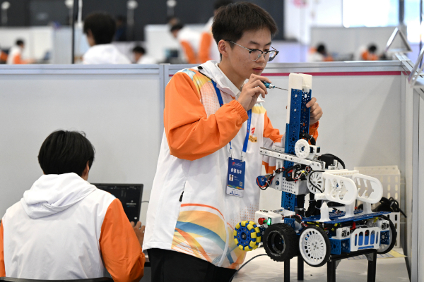 9月19日至23日,第三届全国技能大赛在河南郑州举行。图为9月20日,选手在自主移动机器人项目比赛中。(新华社)