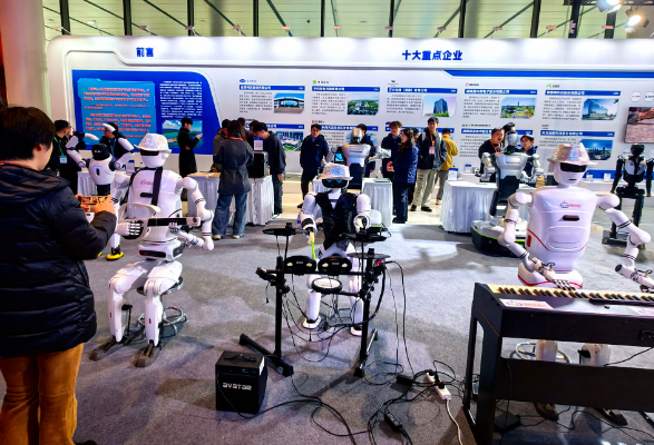 图为一支“机器人乐队”在世界计算大会现场演奏。记者 苏晓洲 摄