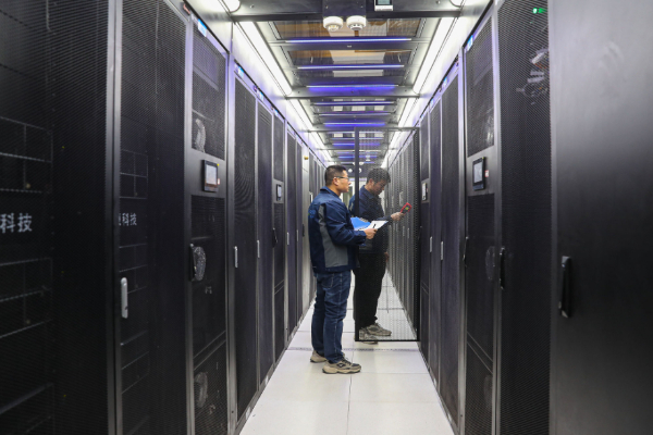 图为工作人员在中国移动(甘肃·庆阳)数据中心机房内巡检。(资料照片)