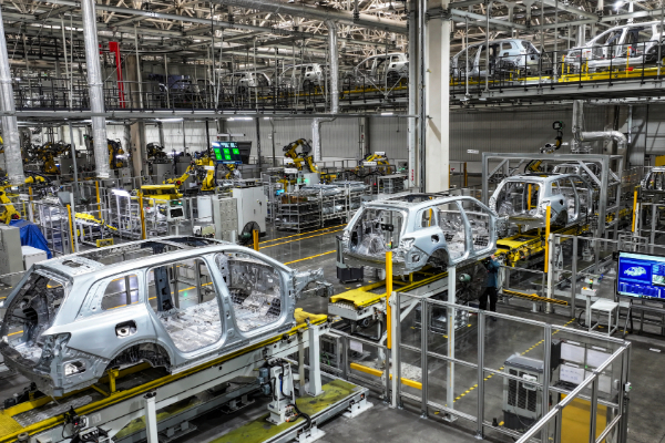 9月19日在位于重庆市两江新区的赛力斯汽车超级工厂拍摄的自动化生产作业现场。(新华社)