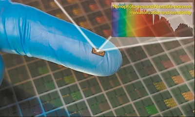 科技日报讯(记者张佳欣)美国加州大学戴维斯分校研究团队在最新《先进光子学》杂志上发表研究称,他们开发出一种仅有砂砾大小的芯片级光谱仪。该光谱仪通过16个微型硅探测器结合人工智能(AI)算法,实现了实验室级的光谱分析功能,能在可见光至近红外波段高精度还原光谱,为便携式医学诊断、食品检测和环境监测提供了新工具。
