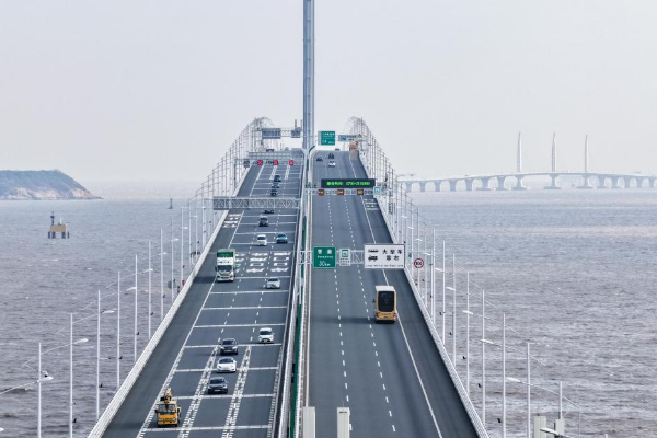 这是1月6日拍摄的港珠澳大桥往来车辆(无人机照片)。新华社记者 邓华 摄
