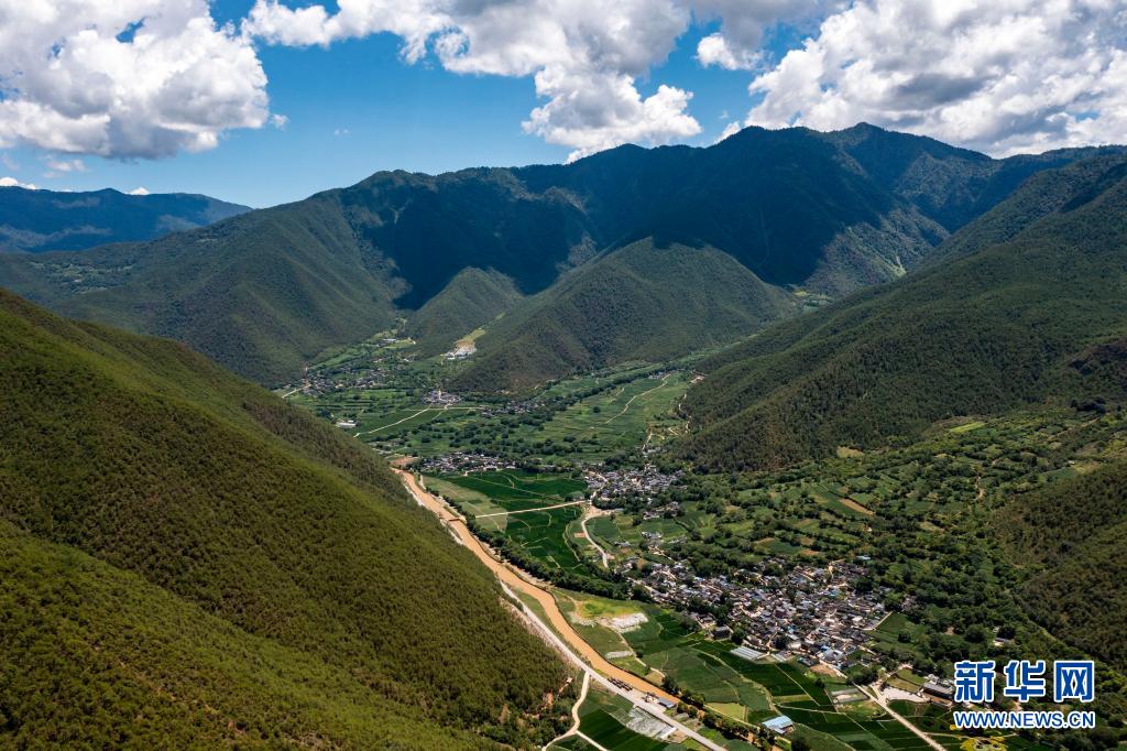空中俯瞰云南省迪庆藏族自治州维西县塔城镇(7月19日摄,无人机照片)。新华社记者 江文耀 摄