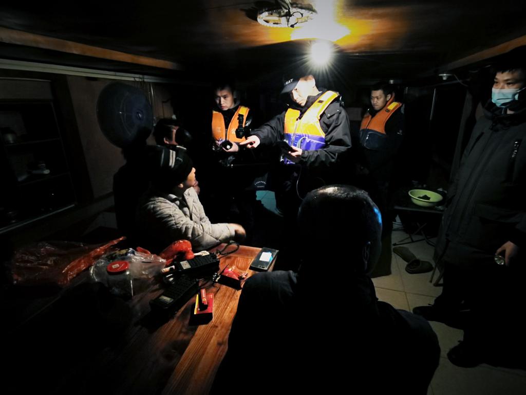 “我们判断这艘船大概率在夜间有过活动。”黄国强说,我们发现,凌晨一两点钟总有一两个人在派出所门口和江堤上游荡,极有可能是负责盯梢放哨的。于是,民警提前埋伏在停船位置附近,连续蹲守了几个晚上,终于发现船在深夜出动了。