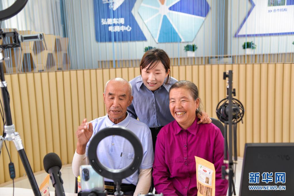 宁夏吴忠市红寺堡区红寺堡镇弘德村村民在直播销售当地特色农产品(7月29日摄)。新华社记者 徐钦 摄