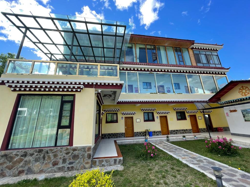 这座3层的藏式小楼是多布杰的家庭旅馆(2021年6月19日摄)。 新华社记者 张兆基 摄