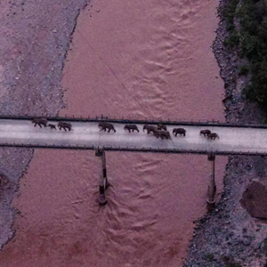4月16日,该象群从普洱市墨江县进入玉溪市元江县,之后一路向北迁移。各级部门不懈努力,通过适量投食引导、疏堵结合的方法开展助迁工作,北移象群逐渐南返。根据专家研判,由于雨季河流涨水,象群无法自行跨越元江天险,因此采取人工引导帮助其跨越元江。