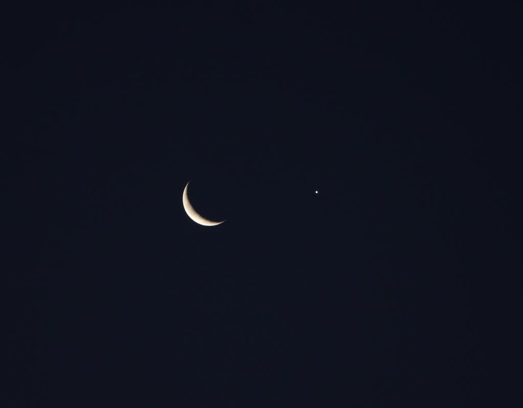 天津市天文爱好者王强2019年1月2日拍摄的“金星合月”。(本人供图)