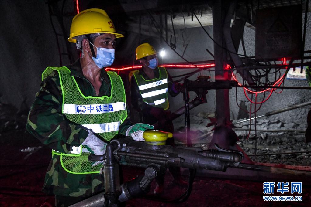 ↑在位于广西河池的贵南高铁德庆隧道内