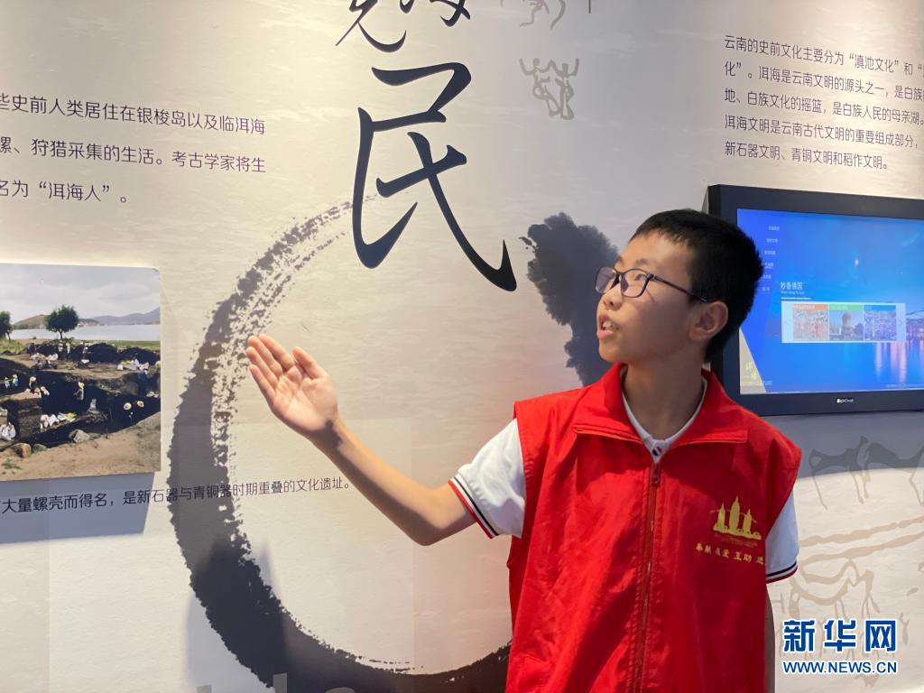 图为一名“小小讲解员”在展厅里进行讲解。(共青团大理市委供图)