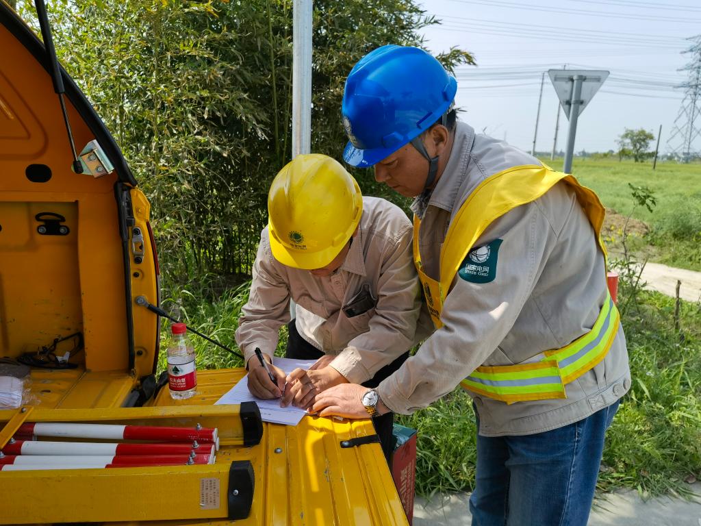 刘国华(右一)在办理故障处理带电作业手续(受访者供图)