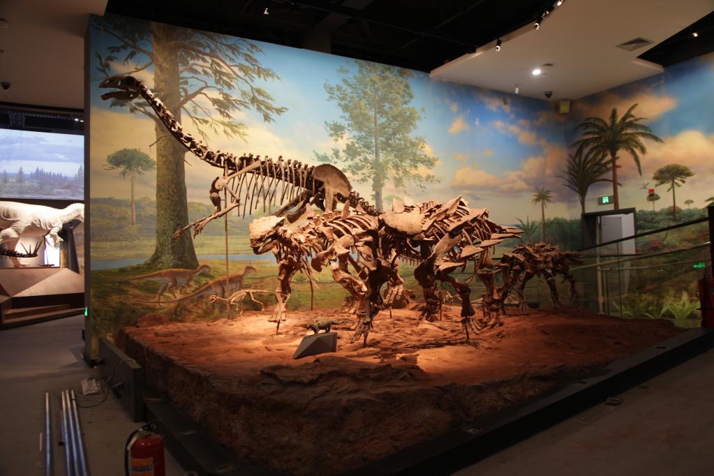 浙江自然博物院安吉馆展示的恐龙骨架化石。郑文杰供图