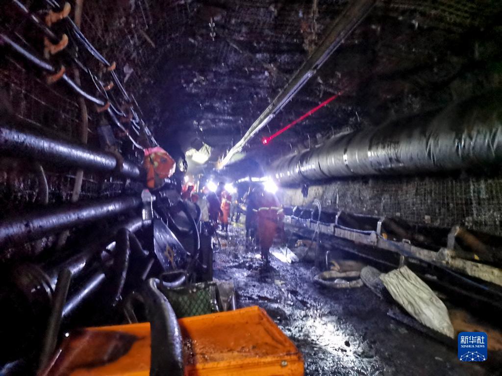 8月20日,救援人员在井下进行救援工作(手机照片)。新华社记者 许晋豫 摄