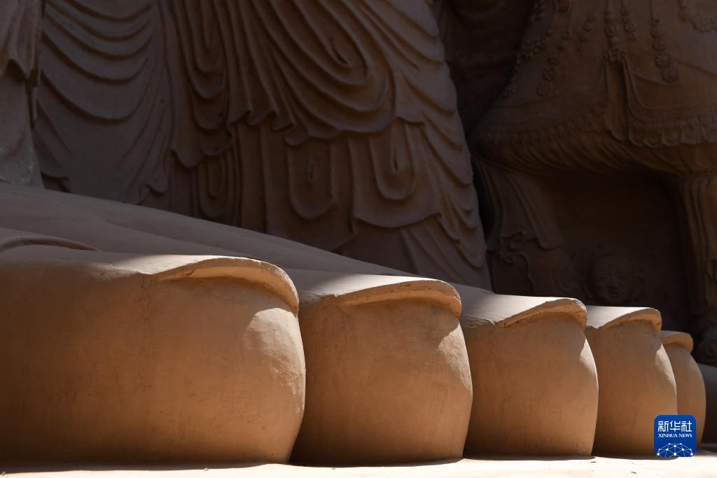 经过一年多的保护修复,位于甘肃省武威市的天梯山石窟第13窟大佛足部抢救性保护工程日前完工,大佛足部获得“康复治疗”。