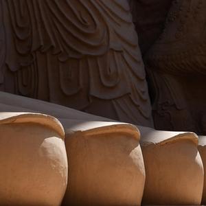 乔海说:“由于底部塑像赑屃没有原始照片,所以只能根据老照片中的形象,制作模型,然后确定形象样式,再进行塑像塑补修复施工。”