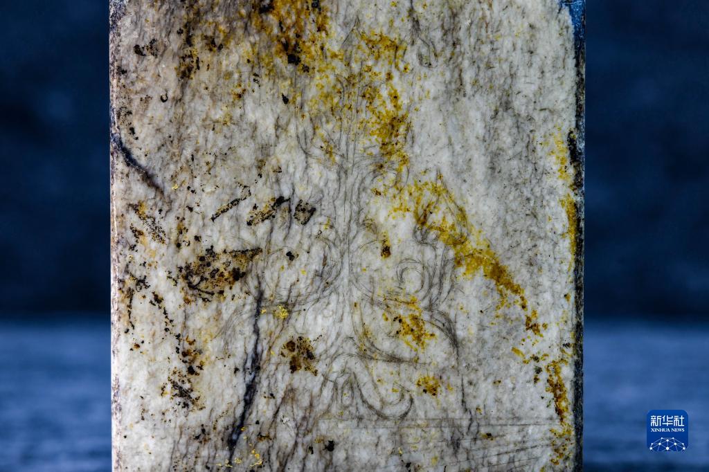 这是在四川省文物考古研究院三星堆考古研究所拍摄的三星堆遗址3号“祭祀坑”出土的刻有神树纹的玉琮局部(9月2日摄)。 新华社记者 王曦 摄
