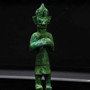 这是在四川省文物考古研究院三星堆考古研究所拍摄的三星堆遗址3号“祭祀坑”出土的青铜人像(9月3日摄)。 新华社记者 王曦 摄