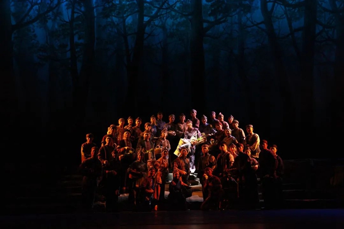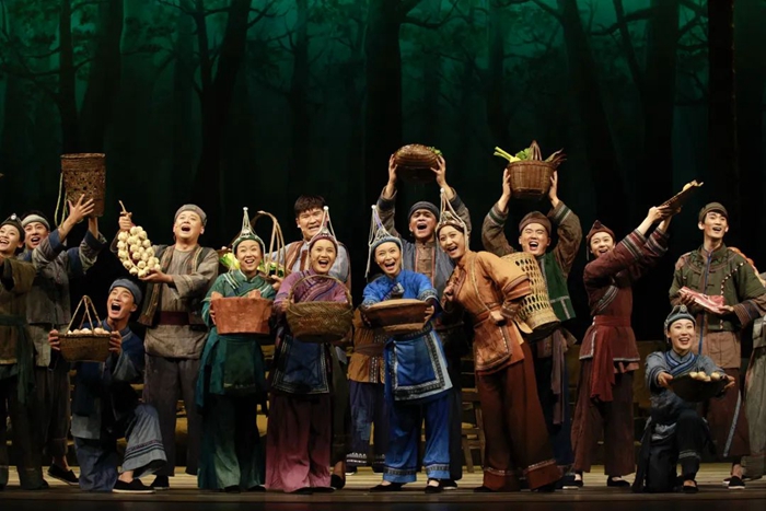 “民族歌剧中,‘歌’ 的重要性自不必多言,人物形象、故事情节都由歌曲来体现和推进。而剧中穿插的 ‘舞’ 的部分,如‘祝寿舞’‘打盐霸’‘糍粑舞’等,都体现了民族文化特色,并将舞蹈融入剧情,有机融合形成整体,有助于剧情的推动和视听效果最佳化。”蒋新光说。