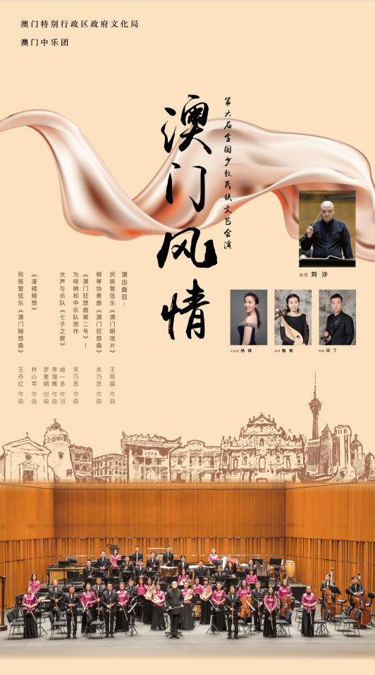 由澳门特别行政区政府文化局辖下澳门中乐团精心构思、倾情演绎的《澳门风情》音乐会,于9月11日亮相第六届全国少数民族文艺会演,在央视网及国家民委门户网站进行网络展播。