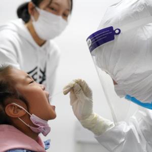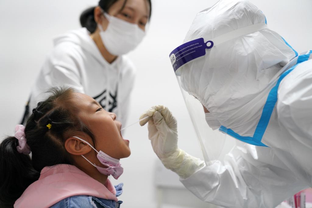↑9月22日,在哈尔滨市南岗区保健路街道松江新城社区核酸检测点,一名小朋友在进行核酸检测。新华社记者 王建威 摄