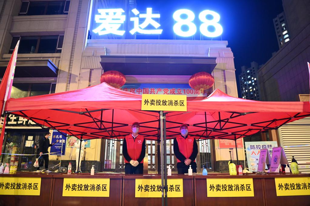 爱达88小区是目前哈尔滨市主城区中唯一的中风险地区。记者在这里看到,社区门前拉有警戒线,门外划定了外卖投放消杀区和专用人员通道,社区工作人员和志愿者穿着厚厚的衣服在站岗。