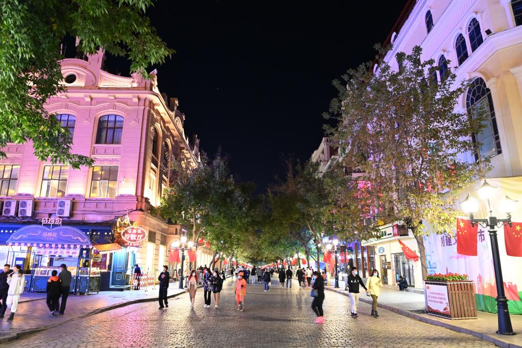 9月23日,哈尔滨市中央大街夜景。新华社记者王建威摄
