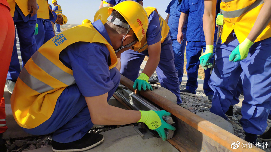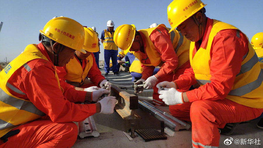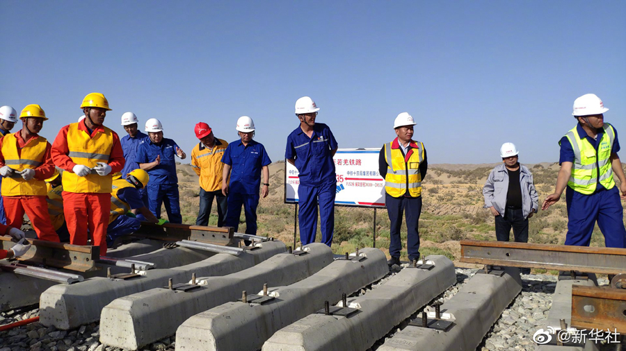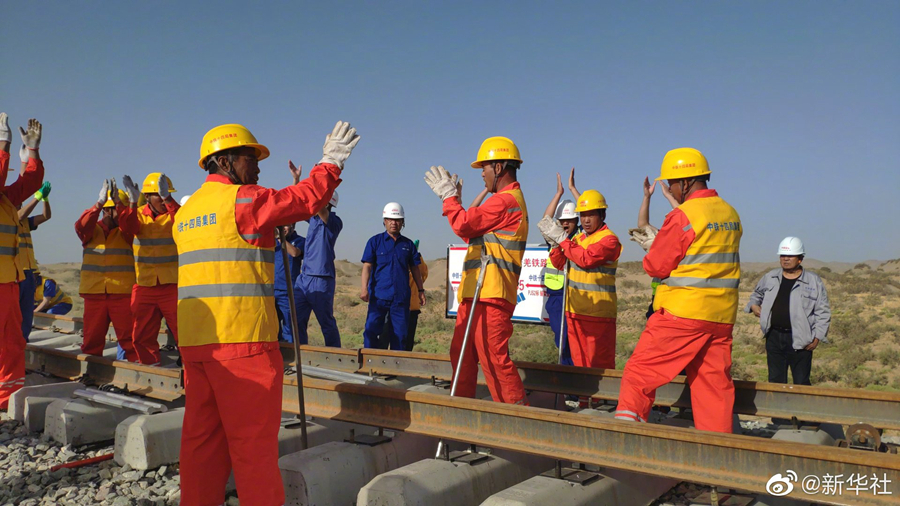 27日上午,新疆和田地区民丰县,和若铁路全线铺轨贯通,标志着环塔克拉玛干沙漠铁路线正式“闭环”。和若铁路为国家重点铁路建设项目,线路全长825.476km,连通南疆和田地区和田市与巴音郭楞蒙古自治州若羌县,预计2022年6月开通运营。完成铺轨的和若铁路与现有格库铁路、喀和铁路、南疆铁路连通,环绕塔克拉玛干沙漠一周。
