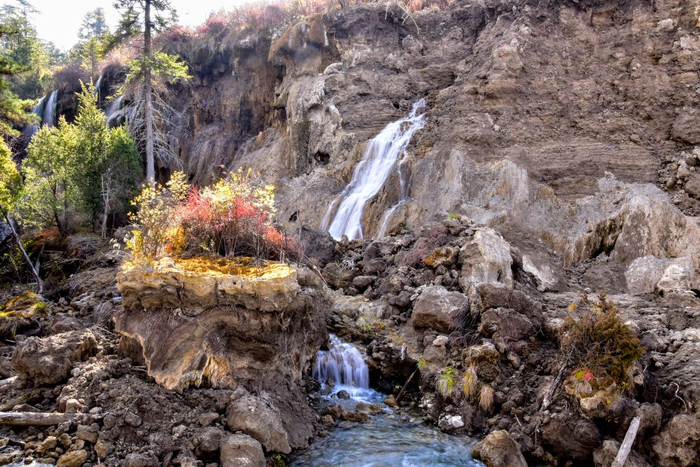 ↑ 2017年11月19日遭遇地震后的诺日朗瀑布