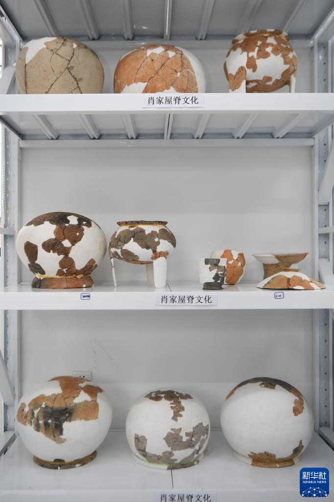 这是10月9日在湖南常德澧县澧阳平原考古工作站拍摄的鸡叫城遗址出土的陶器。新华社记者 薛宇舸 摄