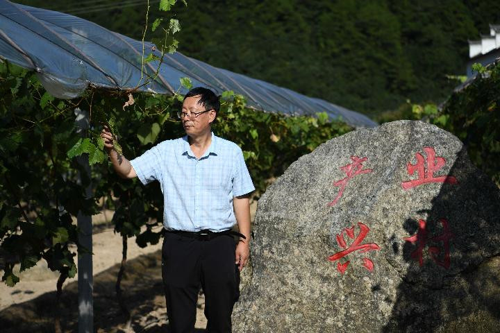 9月14日,李兴国在岳西县五河镇河南村走访一处农业产业园。