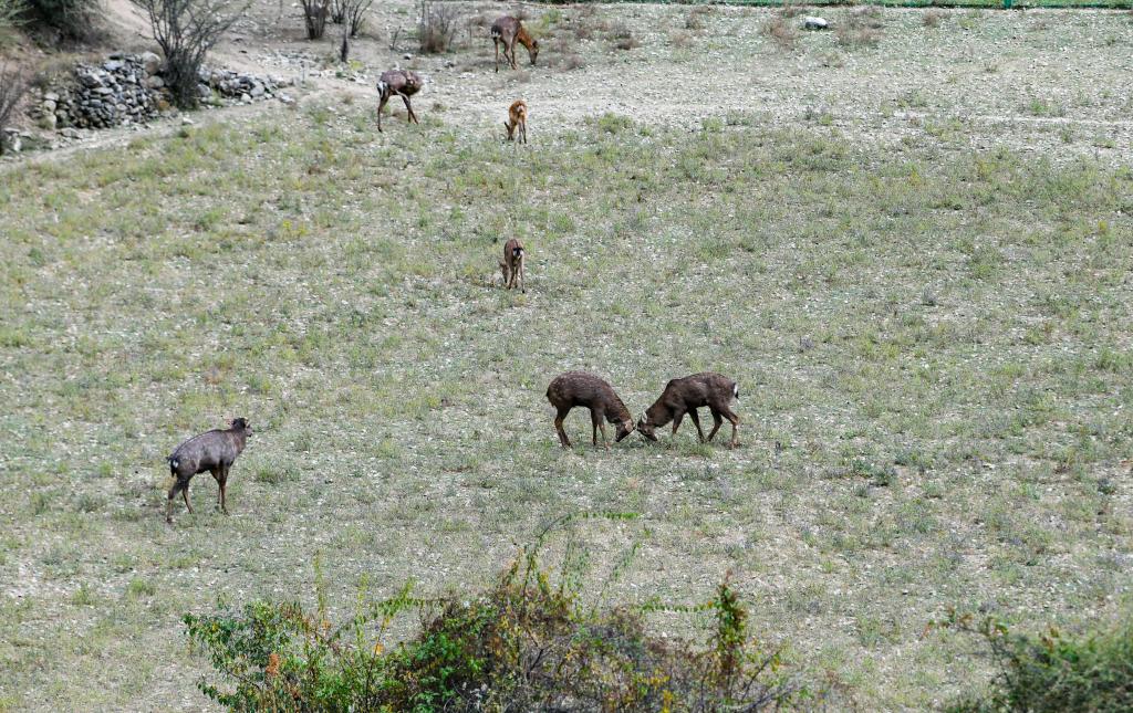 这是10月20日在仁乃农旅融合示范园拍摄的当地养殖的梅花鹿。新华社记者 王曦 摄