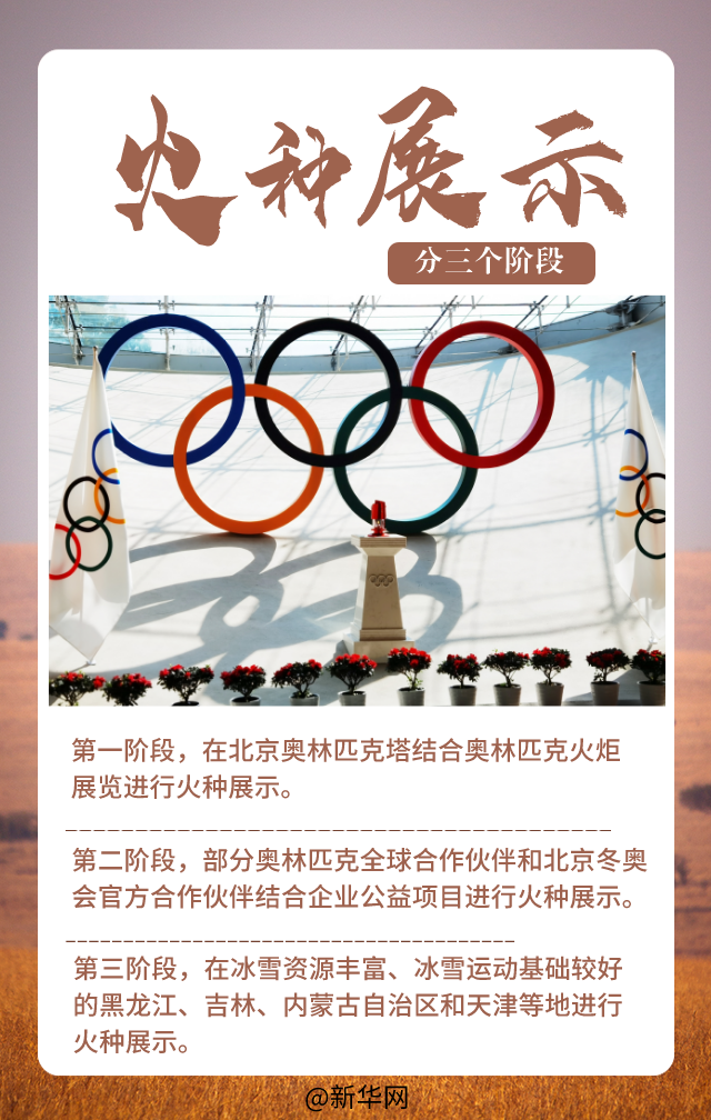 第一阶段,在北京奥林匹克塔结合奥林匹克火炬展览进行火种展示。广泛宣扬奥林匹克精神,动员大家关注、参与北京冬奥会。