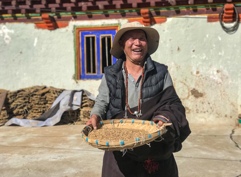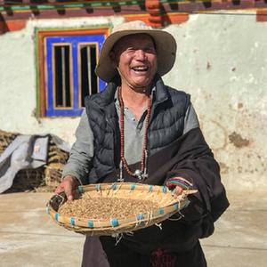 对于洛绒达瓦一家来说,用青稞粉做成的糌粑,是他们的主要食物。洛绒达瓦家里有20多亩地,其中有15亩就用来种植青稞,产量在5000斤左右。