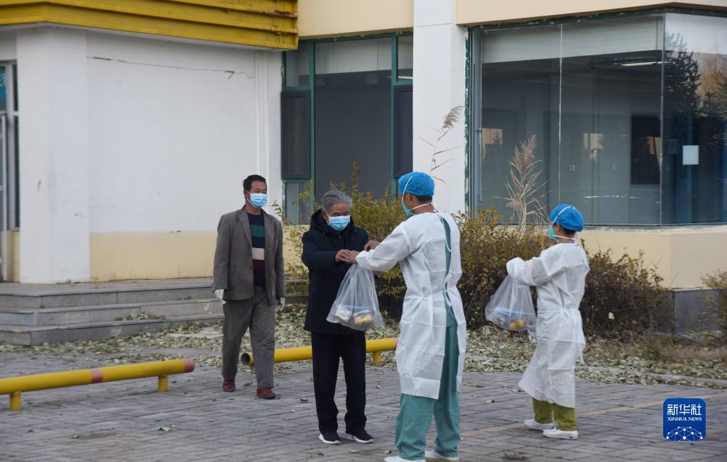 新华社呼和浩特10月31日电(记者王春燕、恩浩)10月31日,一名身穿黑色棉服、头发花白的患者戴着口罩走出内蒙古自治区定点医院的负压病房楼,转身与医护人员挥手致意。随后,有新的医护人员迎上来,为他送上水果等慰问品,陪着他走向康复楼,进行康复治疗。这名患者是此次内蒙古疫情发生以来,在内蒙古自治区定点医院集中收治的首批达到出院标准的新冠肺炎患者之一。截至31日12时,内蒙古自治区本轮疫情本土确诊病例治愈8例。