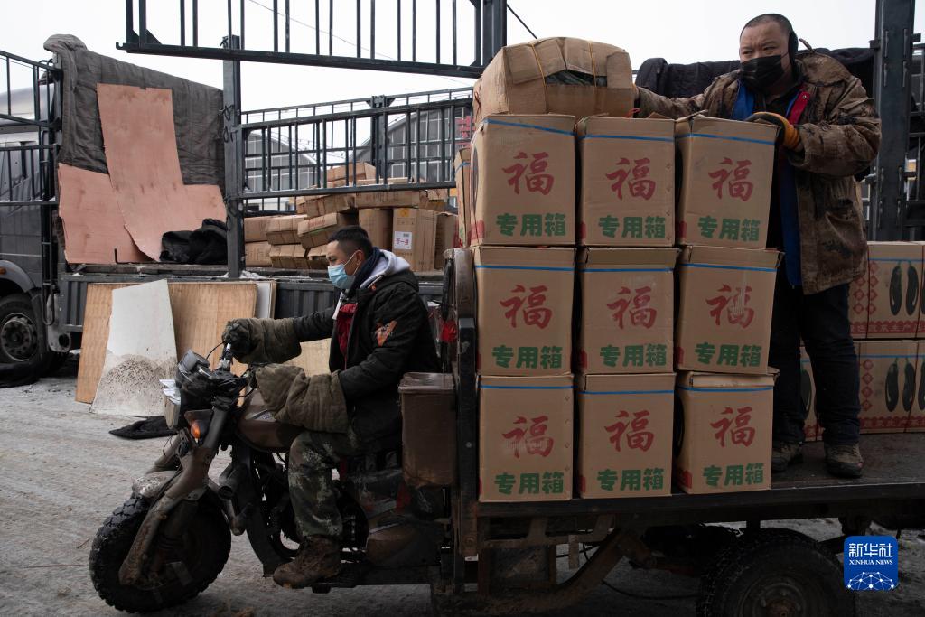 11月10日,在哈尔滨市哈达果蔬批发市场,工作人员在运送蔬菜。