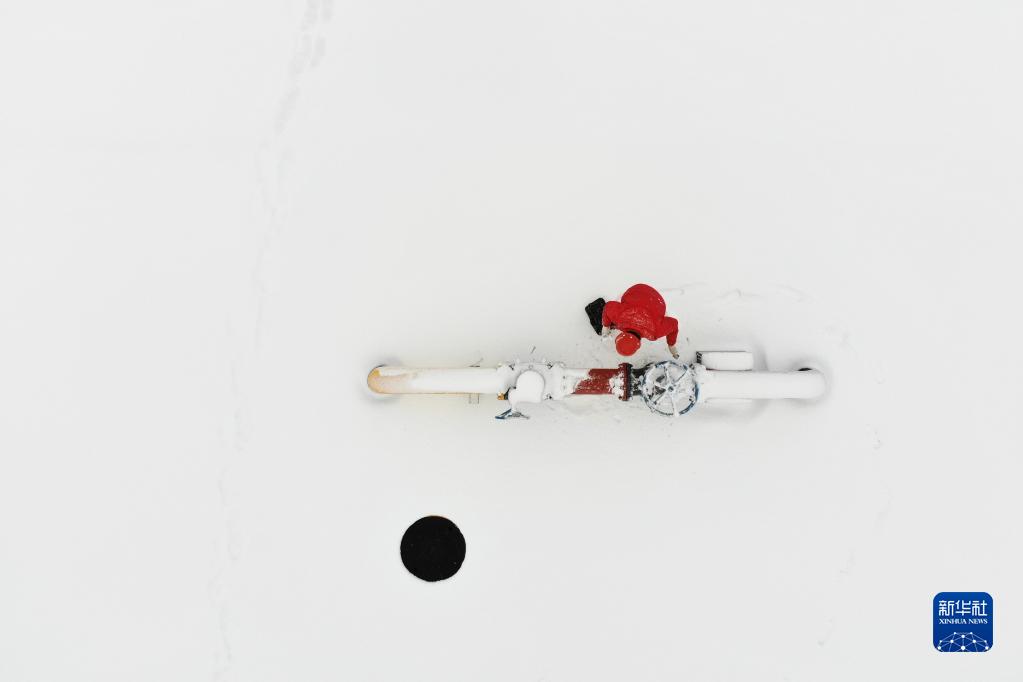 11月9日,哈尔滨中庆燃气有限责任公司成高子门站工作人员在巡检(无人机照片)。
