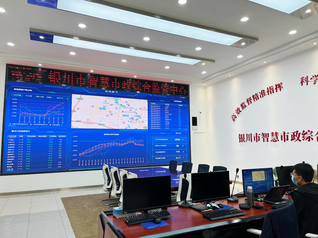 在银川市智慧市政综合监管平台,工作人员实时监测供热质量。(新华社任玮 摄)