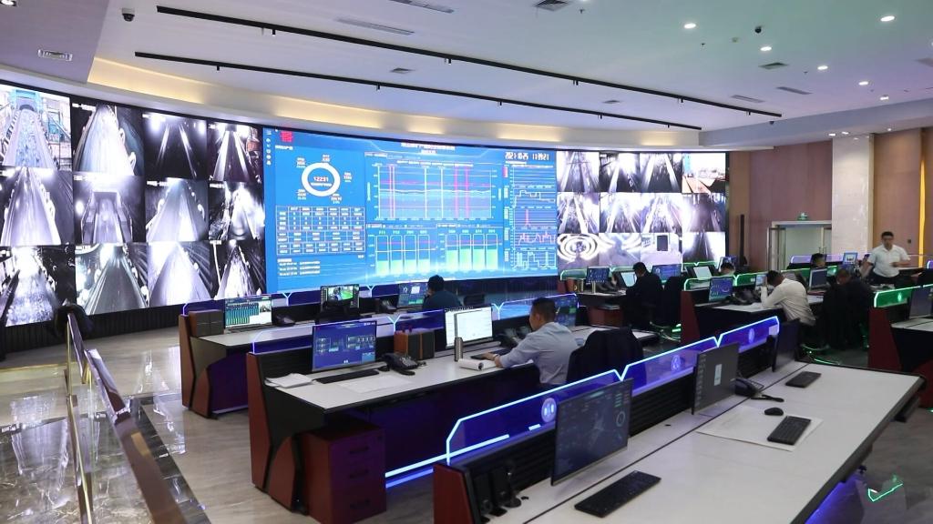 晋能控股集团塔山煤矿地面调度中心,大屏幕上实时显示着井下采煤场景。(受访对象供图)