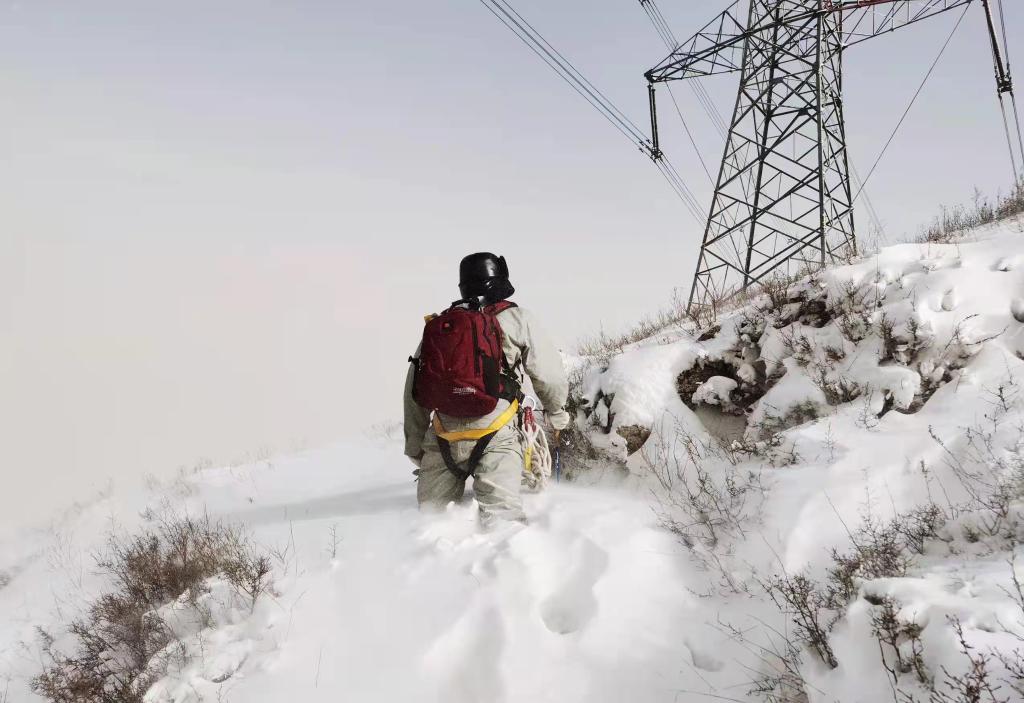 11月7日,国网山西输电检修公司检修人员在雪后开展设备防冰特巡。(受访对象供图)