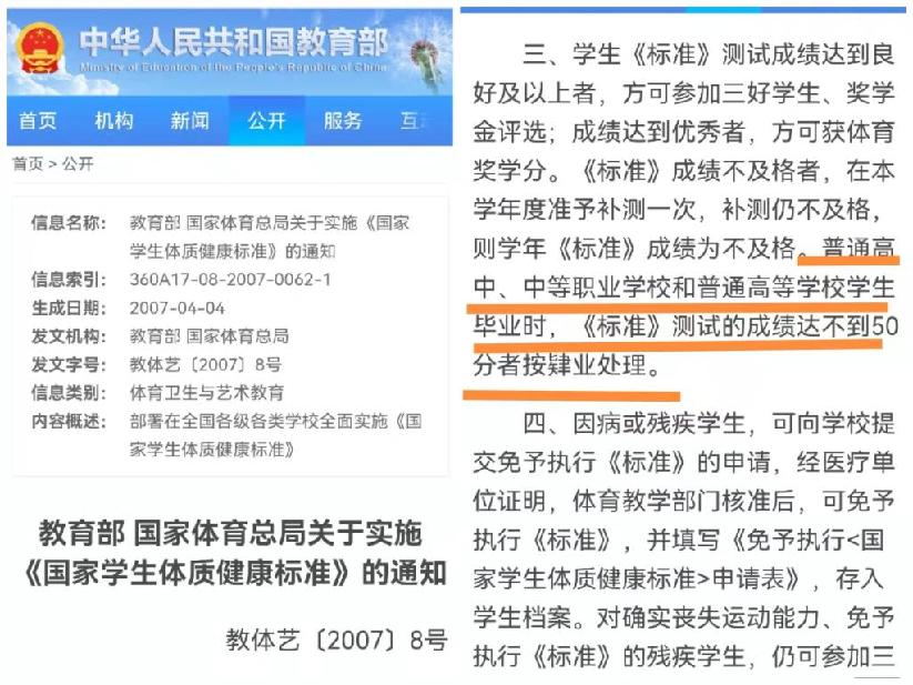 答:大学体测与毕业挂钩的规定并非云南大学首创,云大是在严格执行教育部要求。2007年,类似规定就出现在教育部文件中。