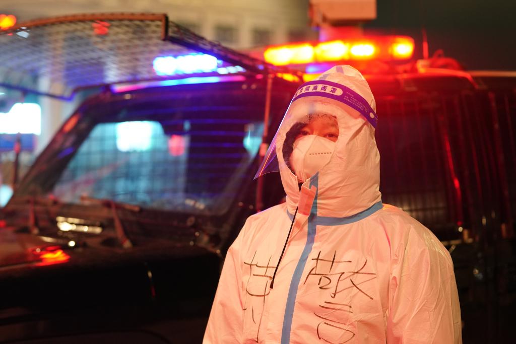 气温降至零摄氏度以下,李济民的防护面罩上起了一层薄薄的水雾,在寒风中,他已经值守了15个小时。