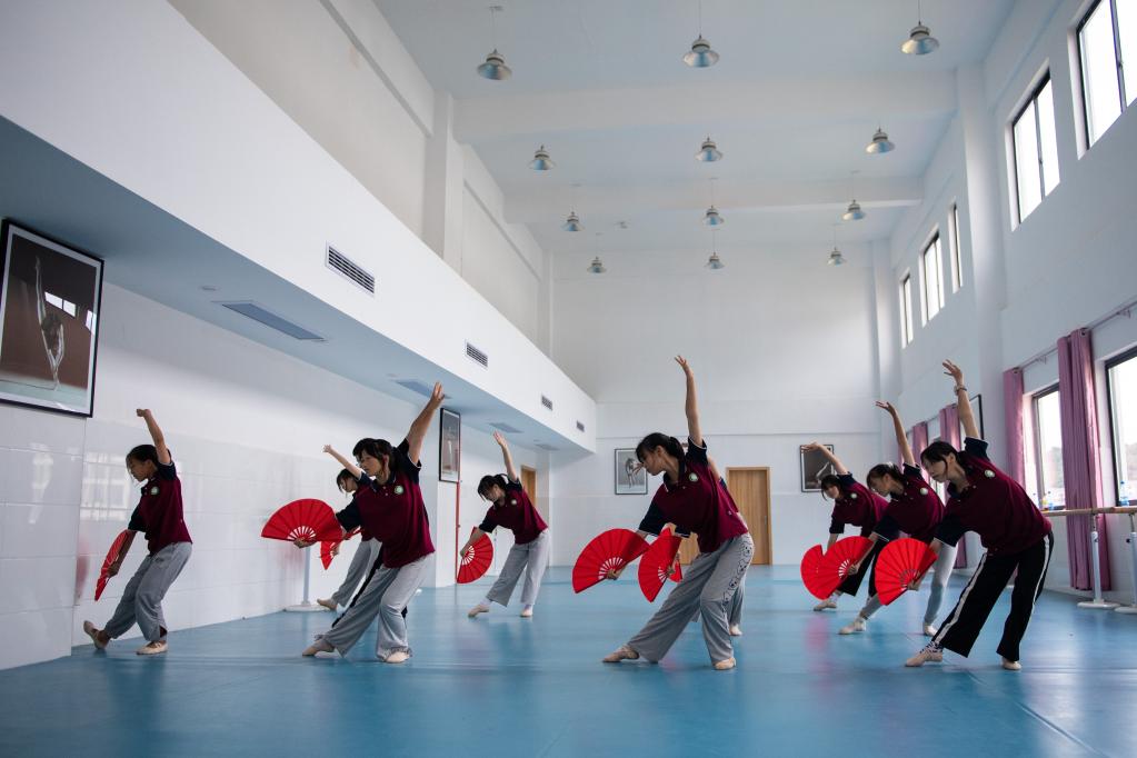 9月9日,在湖南省张家界市桑植县芙蓉学校,学生在舞蹈教室练习舞蹈。新华社记者 陈思汗 摄