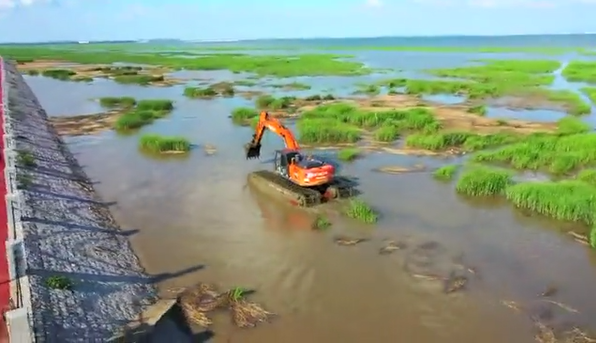 “根据技术要求,我们把翻耕深度定在20厘米至30厘米,石头较多的河道或翻耕设备无法作业的局部区域,采用挖掘机深埋的办法,深埋深度达到1米,把互花米草植株全部翻耕铲碎或深埋,达到最佳治理效果。”焦明伟说。