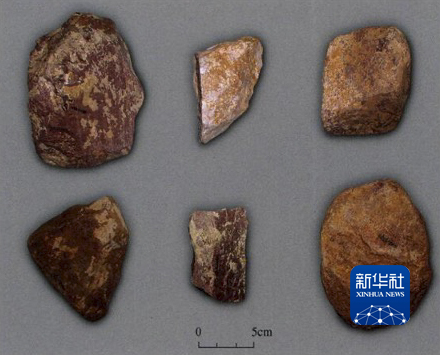 这是织机洞遗址出土的砾石石器(资料照片)。新华社发(郑州市文物考古研究院供图)
