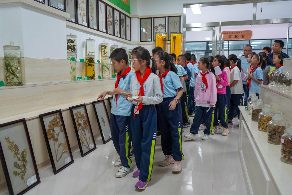 渭州学校的学生在陇西药圃园内参观中草药标本室。新华社记者郎兵兵 摄