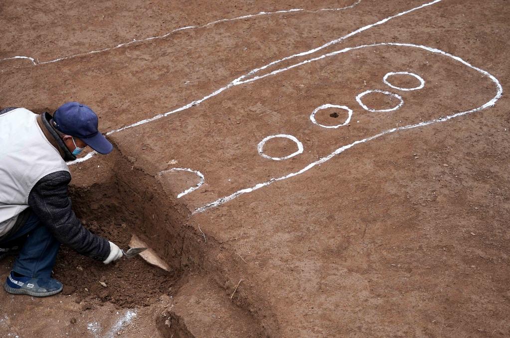 工作人员在河南偃师商城小城发现的商代城门遗址进行发掘作业(12月8日摄)新华社记者李安摄