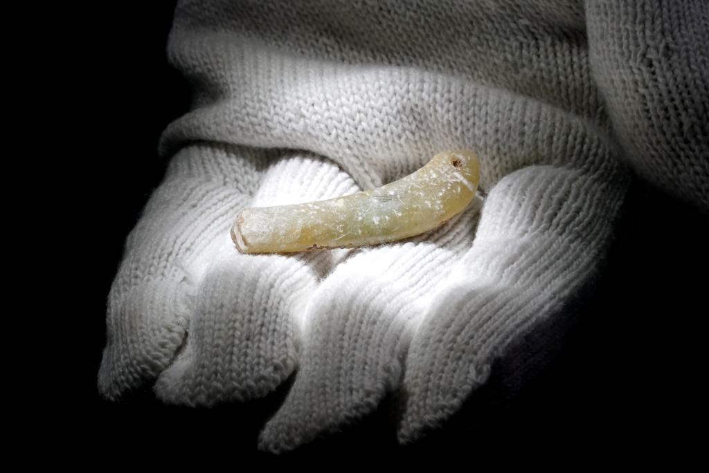 这是苏羊遗址出土的玉璜(12月15日摄)。新华社记者 李安 摄
