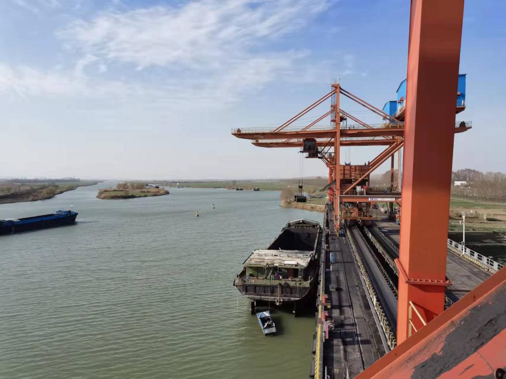 冬月的淮河码头冷风呼啸。虽是晌午,卸船机的“钢爪”未曾停歇,不断伸向停泊在岸的运煤船。一爪下去就是5吨,伴随着全自动、封闭化的管线,黑色的煤炭直接进入两公里外的中安联合煤化有限责任公司的储煤仓。