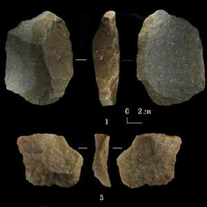 ↑太子陵旧石器时代遗址出土的石制品(砍砸器)。(天津市文化遗产保护中心供图)