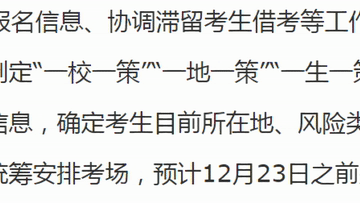 在前期摸排考生报名信息、协调滞留考生借考等工作的基础上,省教育考试院按照“分类处置”原则,根据不同情况,制定“一校一策”“一地一策”“一生一策”,确保实现“应考尽考”。